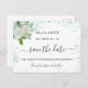 A girly and trendy Save the Date card for a 40th (or any age) birthday party. A stylish white background decorated with green faux glitter sparkles, white florals and greenery. Personalize and add a date and name/age 40. Black colored letters. The text: Save the Date is written with a large trendy hand lettered style script.