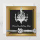 Birthday Party Gold Black Chandelier Silver Bow Invitation