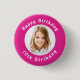 A hot pink background. Personalize and add a photo and age. With the text: Happy Birthday. Curved text. White colored text.