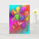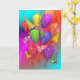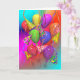 A colorful birthday greeting card with my 3d artwork of balloons, streamers and party hats. Text inside says "Happy Birthday!"
