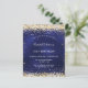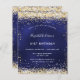 A modern, stylish and glamorous invitation for a 21st (or any age) birthday party. A navy blue background, decorated with faux gold glitter dust. The blue color is uneven. Personalize and add your name and party details.