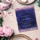 A modern, stylish and glamorous invitation for a 21st (or any age) birthday party. A navy blue background, decorated with pink faux glitter dust. The blue color is uneven. Personalize and add your name and party details.