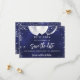 A girly and trendy Save the Date card for a 18th (or any age) birthday party. A navy blue uneven colored background. Decorated with faux silver glitter and white balloons. The text: Save the Date is written with a large trendy hand lettered style script.