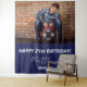 A tapestry for a 21st (or any age) birthday party for guys. A navy blue. Personalize and add your own high quality photo of the birthday boy/man. The text: The name is white with a modern hand lettered style script. Tempates for a name, age 21 and a date. Can be used as wall decor for the party or as a photo booth backdrop.