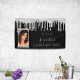 A banner for a girly and glamorous 21st (or any age) birthday party. A chic black background with trendy faux silver glitter drips, paint dripping look. Personalize and add your own vertical photo of the birthday girl. The name is written in a modern hand lettered style script. White letters.