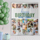Birthday Backdrop with personalized photo collage and name. Substantial piece of birthday party decor, great talking point and perfect backdrop for photobooth or entrance welcome. Happy Birthday is lettered in modern casual script and bold typography. The template is ready for you to add your pictures in rows, working left to right and will display your photos in a combo of square, portrait and landscape formats. It has a color palette of grey blue and green but, if you want to change the colors, click "customize further" or message me for assistance.