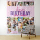 Birthday Backdrop with personalized photo collage and name. Substantial piece of birthday party decor, great talking point and perfect backdrop for photobooth or entrance welcome. Happy Birthday is lettered in modern casual script and bold typography. The template is ready for you to add your pictures in rows, working left to right and will display your photos in a combo of square, portrait and landscape formats. It has a color palette of pink and purple but, if you want to change the colors, click "customize further" or message me for assistance.