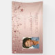 A banner for a girly and glamorous 50th (or any age) birthday party. A rose gold background decorated with stars. Personalize and add your own photo, a name written in dark rose gold with a large modern hand lettered style script with swashes. To keep the swashes only delete the sample name, leave the spaces or emoji's in front and after the name. Templates for a date and age 50.