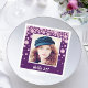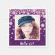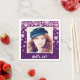 An elegant napkin for a girly glam 21st birthday party. A chic purple background and faux pink diamonds as decoration. A slim frame and template for Your photo. With the text: Hello 21!
