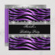 Birthday Party Purple Silver Zebra Diamond Black Invitation