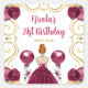 This birthday sticker features an elegant gold frame, a beautiful princess with red hair and a burgundy red dress, flowers and a balloon. This is perfect for a birthday party.