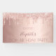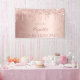 A banner for a girly and glamorous 50th (or any age) birthday party. A rose gold background with rose drips, paint drip look. The text: Tempate for a name written in dark rose gold with a large modern hand lettered style script. Templates for a date and age 50. Perfect both as a welcome banner or as party decor.