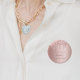 A girly and trendy button for a 50th (or any age) birthday party. A feminine pink, rose gold background decorated with rose gold drips. Templates for a date and name/age 50. Dark rose gold colored letters. Perfect for the party as a favor or Save the Date, reminder for your guests.