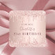 For a girly and glamorous 21st (or any age) birthday party. A rose gold faux metallic looking background with faux glitter drips, paint dripping look. Personalize and add a name, age 21 and a date. The name is written in dark rose gold with a modern hand lettered style script.