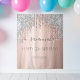 A tapestry for a girly and glamorous 21st (or any age) birthday party. A rose gold , pink gradient background with an elegant rose gold and faux silver glitter drips. The text: The name is written in gray with a modern hand lettered style script with swases. To keep the swashes only delete the sample name, leave the spaces or emoji's in front and after the name. Personalize and add a name, age 21 and a date. Can be used as wall decor for the party or as a photo booth backdrop.