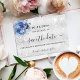 A girly and trendy Save the Date for a 50th (or any age) birthday party. A classic faux silver metallic looking background decorated with faux silver glitter dust and blue flowers. Personalize and add a date and name/age. The text: Save the Date is written with a large trendy hand lettered style script.