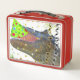 This is a standard metal lunchbox that appears to work just fine. We designed this box ourselves with an uploaded photo and custom text on the front and back. It looks absolutely beautiful except the front of the lunchbox is not centered like it shows in the photo. The print borders don't align with the inset flat part of the box where the preview photo online showed it perfectly centered in there. The back looks nice and centered though.