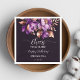 Elegant purple rose gold peonies floral birthday party personalized tableware template napkins, purple and rose gold leaves watercolor peonies dark purple background birthday party napkins