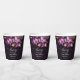 Elegant purple rose gold peonies floral adults birthday party personalized tableware template party cups, purple and rose gold leaves watercolor peonies dark purple background birthday party paper cups