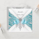 Birthday Party Teal Silver White Zebra Diamond Bow Invitation