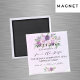A modern and elegant Save the Date magnet for your milestone birthday celebration. Watercolored violet, lavender background, black text. Decorated with violet and purple flowers. Personalize and add a date and name. The text: Save the Date is written with a large trendy hand lettered style script.