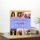 A gift from friends for a woman's 21st (or any age) birthday, celebrating her life with a collage of 6 of your high quality photos of her, her friends, family, interest or pets. Personalize and add her name, age 21 and your names. A modern violet background color. Her name is written with a modern hand lettered style script with swashes. Decorated with faux gold glitter drips, paint dripping look.