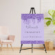 A banner for a girly and glamorous 50th (or any age) birthday party. Violet, lavender colored background, decorated with faux glitter drips, paint dripping look. Personalize and add a date, name and age 21.