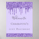 A banner for a girly and glamorous 50th (or any age) birthday party. Violet, lavender colored background, decorated with faux glitter drips, paint dripping look. Personalize and add a date, name and age 21.