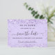 A girly and trendy Save the Date card for a 40th (or any age) birthday party. A violet, lavender colored background decorated with confetti. Personalize and add a date and name/age 40. Black colored letters. The text: Save the Date is written with a large trendy hand lettered style script.