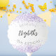 Girly and trendy balloons for a 18th (or any age) birthday party. A chic white background decorated with violet faux glitter, confetti. Personalize and add a date name and age. The name is written with a modern hand lettered style script. Perfect as party decorations and as table setting. Black text.