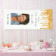 A vertical banner for a girly and glamorous 50th (or any age) birthday party. A chic whtie background with faux gold glitter drips, paint dripping look. Personalize and add a photo of the birthday girl. The text: Templates for text, name and a date. Perfect both as a welcome banner or as party decor. The name is written in black with a hand lettered style script.