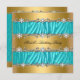 Birthday Party Wild Teal Zebra Gold Diamond Invitation