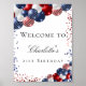 A welcome poster for a girly and glamorous 21st (or any age) birthday party. Decorated with patriotic colored balloons in red blue and white, blue and red sparkles. Personalize and add a name and age 21.