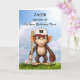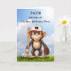 Make his birthday a home run with this fully personalized baseball-themed card! Featuring a playful monkey holding a bat and glove, this fun design is perfect for a young baseball fan. Customize both the front with his name and age, creating a unique keepsake just for him. A fantastic way to celebrate a sports-loving boy of any age with a card as special as he is!
