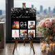 A welcome board for a 21st (or any age) birthday party, celebrating her life with a collage of 5 of your photos. Personalize and add a name, age 21 and a date. Date of birth or the date of the party. White and gray colored letters. Elegant black looking background, decorated with faux silver glitter dust.