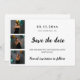 A Save the Date card for a 50th (or any age) birthday party. For both women and men. The text: Save the Date is written with a large trendy hand lettered style script. Personalize and add a 3 photos.
