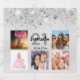 Birthday photo collage silver glitter monogram sparkling wine label