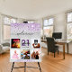 A welcome board for a 21st (or any age) birthday party, celebrating her life with a collage of 5 of your photos. Personalize and add a name, age 21 and a date. Date of birth or the date of the party. Gray colored letters. Elegant faux silver metallic looking background, decorated with purple faux glitter dust. With the text: Welcome