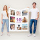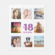 A gift for a girl's 18th birthday (or any age), celebrating her life with a collage of 8 of your photos. Templates for a name, age 18 and a date. Date of birth or the date of the anniversary. Pink and purple colored letters. White colored background.