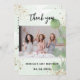 A Birthday Thank You photo card. A waterecolored green background, decorated with a eucalyptus sprig. Personalize and add your photo and thank you note.