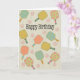 This is a birthday card for anyone who loves pickleball. It has four different patterned pickleball rackets with light pink pickleballs. The text says, ‘Happy Birthday.’
