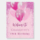 A welcome board for a girly and glamorous 18th (or any age) birthday party. A trendy pastel pink background with elegant faux sparkles and pink balloons. Personalize and add a name and age 18. Dark pink letters.