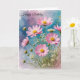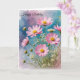 A bouquet of pink cosmos and baby's breath is presented against a soft, pastel-colored background with a dreamy, watercolor effect