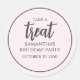 This design features a cute sweet pink birthday whimsical modern script, a minimalist take-a-treat template, a creative sticker label party favor, a candy buffet bar cookie cute, a simple minimalist minimal circle script, a custom customize whimsical chic, creative stylish classy labels, a birthday treat favor pink polka dots label, a cute birthday party supplies,