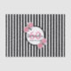 Classic slim black and white vertical stripes as background. With girly, feminine and romantic pink roses as decoration. Perfect for an elegant 60th birthday party for her. A white and black frame with templates for name, age and a date. Age number 60 in pink, name and date in black. The name is written with a hand-lettered style script.
