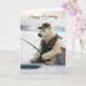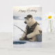 A polar bear is ice fishing on a frozen lake, with its hard-earned catch stored in a bucket.