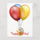 This is a great postcard to mail out for a birthday. It features everything you need on a birthday, balloons and a cupcake. The text on the front and back are customizable.