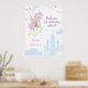Birthday Poster with an adorable unicorn with wings, which is surrounded by cute pictures of a magical castle, clouds and festive bunting.