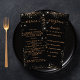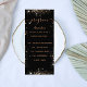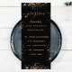 Birthday party program and menu card. Personalize and add a name, age, date, program of the day and the menu. A chic black background, decorated with faux glitter dust. Golden colored letters.