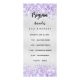 Birthday party program on the front and the menu on the back. Personalize and add a name, age, date, program on the front and a the menu on the back. A stylish faux silver looking background, decorated with violet confetti. Black colored letters.